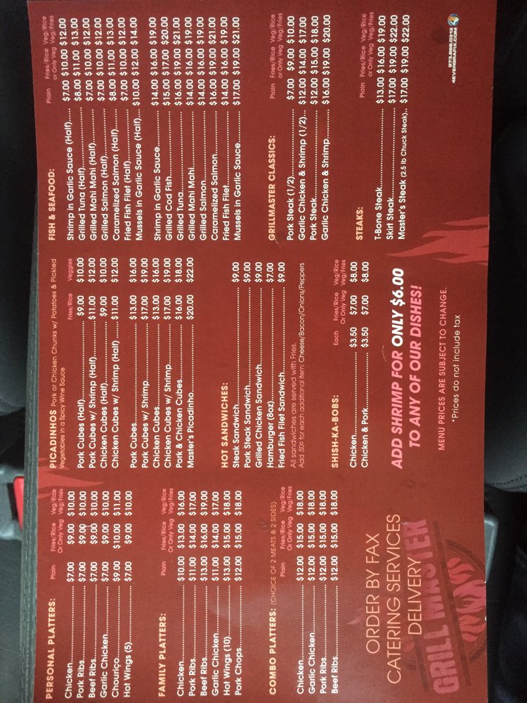 Grill Master BBQ Menu